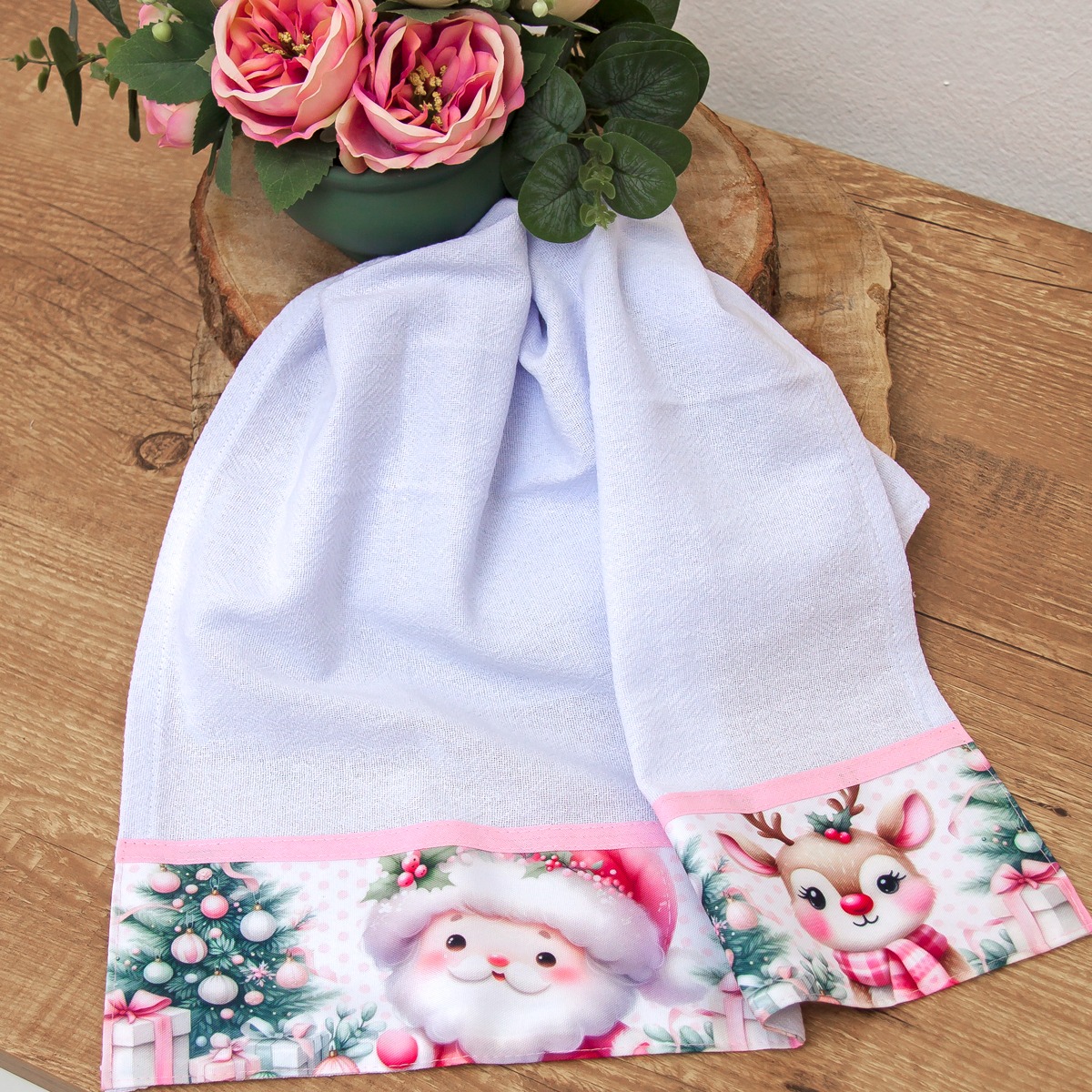 01 Pano de Prato Cozinha C/Barrado Digital -Coleção Natal Noel Rosa