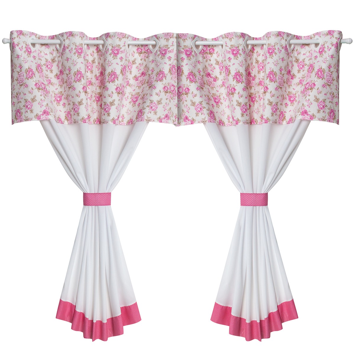 Esta cortina contém 2,60m de largura x 1,20m de altura e 2,60m de tecido na sua largura total sem o franzimento.