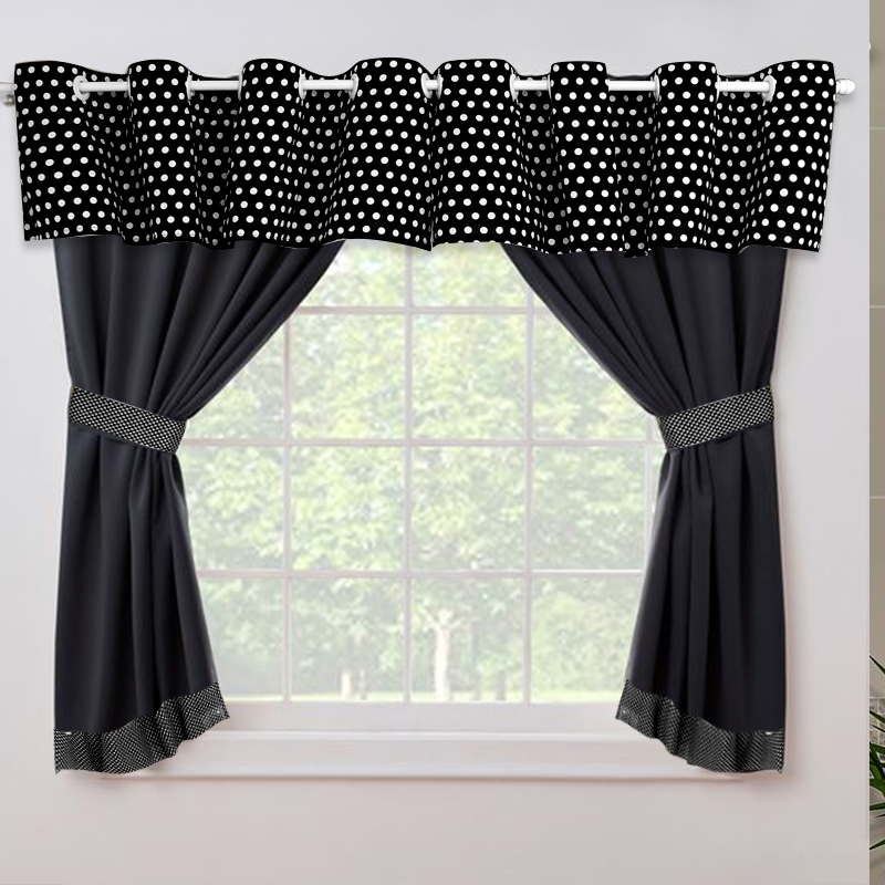 Esta cortina contém 2,60m de largura x 1,20m de altura e 2,60m de tecido na sua largura total sem o franzimento.