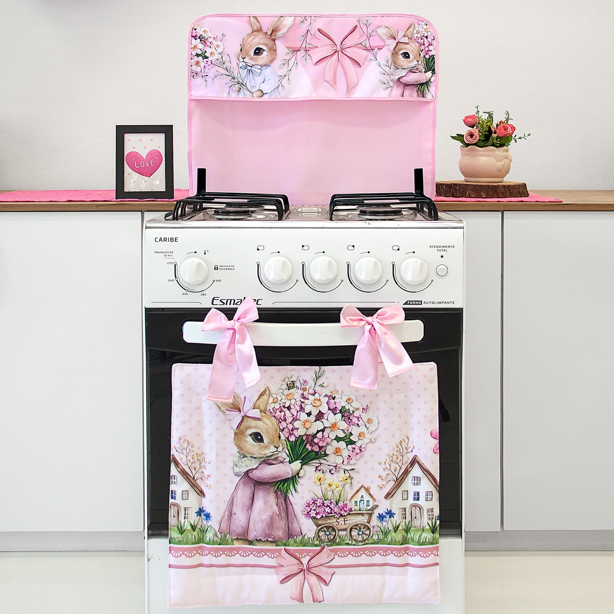 Kit Decoração Para Fogão 5 e 6 Bocas- Estampa Digital Páscoa Coelhinha