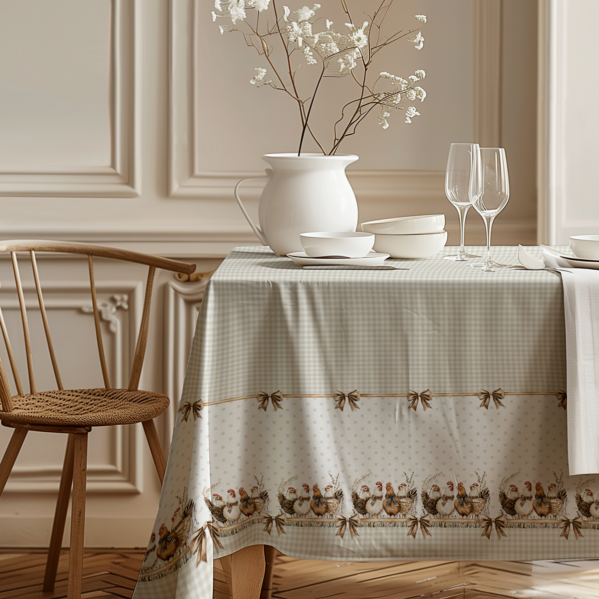 Toalha de Mesa 6 Lugares 2,20 x 1,35m - Estampa Galinha Digital